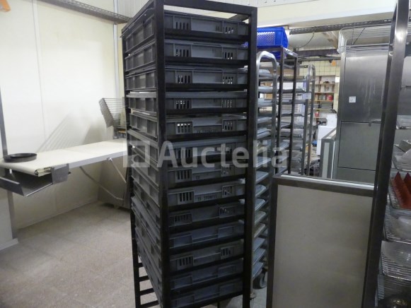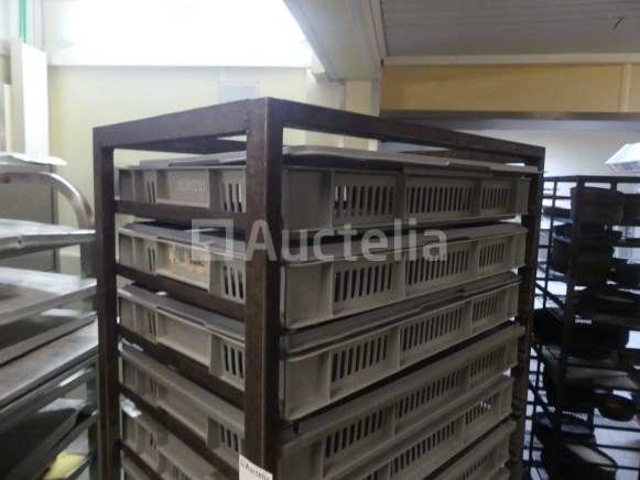 Lengte: 65 cm Breedte: 42 cm Hoogte: 184 cm Geleverd met +- 14 kunststof bakken van 60X40 cm