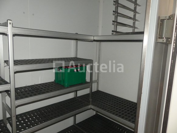 Positieve koelcel Merk: Matrix Spanning: 400V driefasig Lengte: 315 cm Breedte: 145 cm Hoogte: 250 cm Status: Functioneel op Inventarisatiedag Geleverd met planken Geen vloer (te plaatsen op de grond) Motor uit het midden op het dak Interne afmetingen: 300x120x245 cm Opmerkingen: Aanbevolen bezoek Afhalen op afspraak