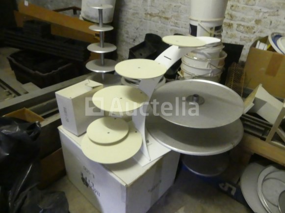 Draaitafels, mallen en verpakkingen Compositie: Taartvormen Bakvormen Taart- en gebakdisplays Winkel displays Diverse potten en emmers Enz. Kavel gelegen op de 1e verdieping Opmerkingen: Aanbevolen bezoek