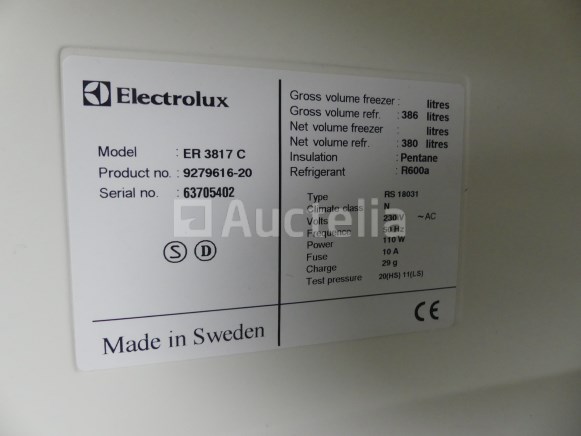 Koelkast Merk: Electrolux Model: ER3817C Spanning: 230V Mono Lengte: 59 cm Breedte: 66 cm Hoogte: 179 cm Vermogen: 110 watt Inhoud: 380 liter Staat: Niet getest