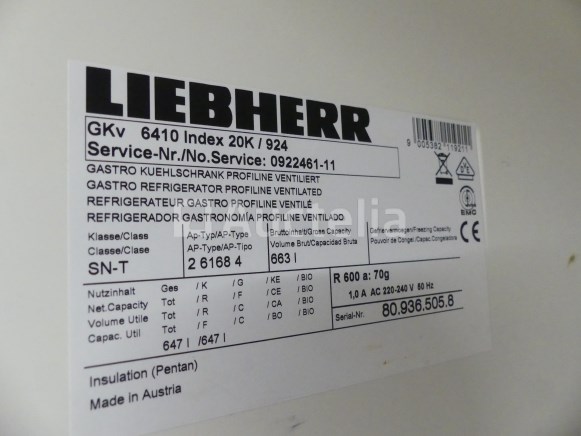 Koelkast Merk: Liebherr Model: GKV 6410 Spanning: 230V Mono Lengte: 75 cm Breedte: 77 cm Hoogte: 204 cm Capaciteit: 663 liter Conditie: Niet getest Opmerkingen: Aanbevolen bezoek