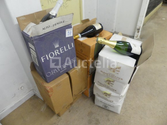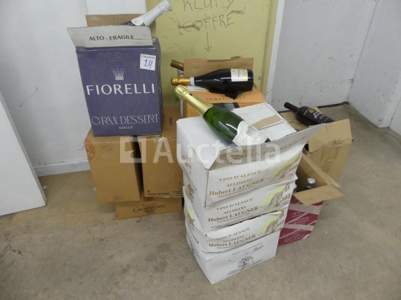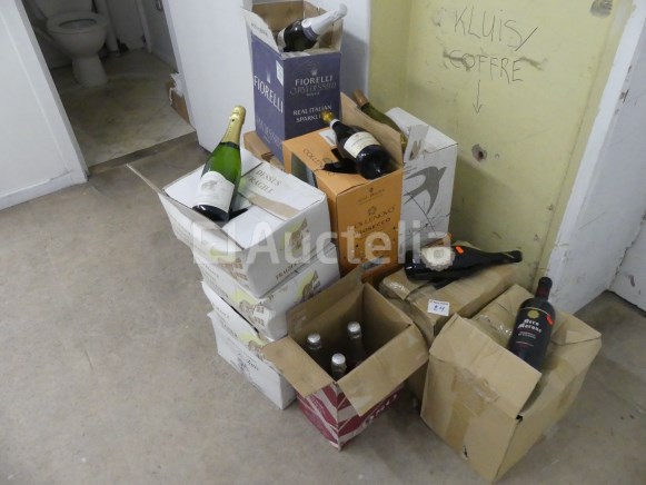 Wijn- en mousserende wijnflessen Hoeveelheid: +- 75 Lot waaronder: Crémant d'Alsace, Chablis premier cru, Prosecco, Fiorelli, Primitivo, Pouilly-fumé In geopende of onvolledige dozen