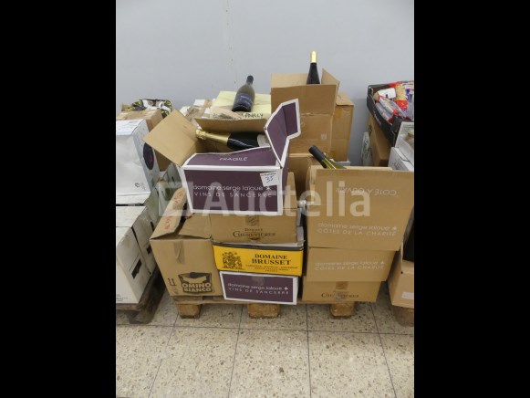Doosjes met +- 6 flessen wijn en mousserende wijn Aantal: +- 30 Verspreid over 1 pallet Opmerkingen: Aanbevolen bezoek