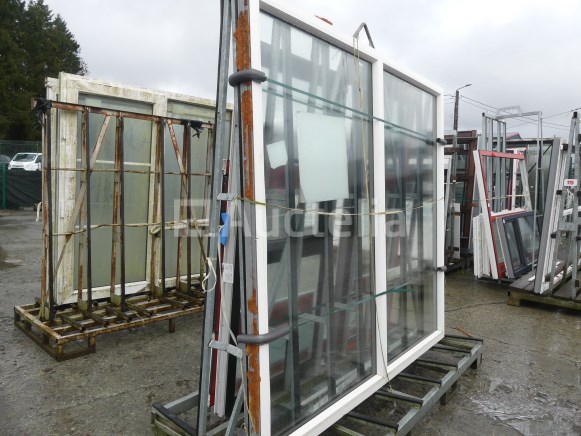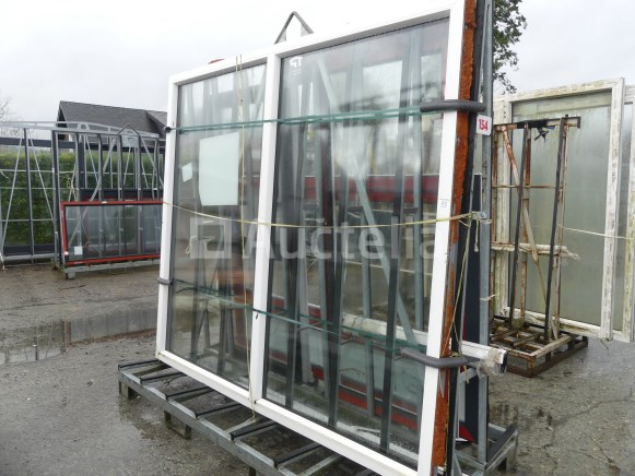 Vast kozijn met 2 glasplaten Breedte: 245 cm Hoogte: 220 cm Intern verkopersnummer (Ref): Ezel 154 Niet inbegrepen: Dragende ezel Wit interieur Zwarte buitenkant Tweedehands chassis (licht beschadigd) Opmerkingen: Aanbevolen bezoek