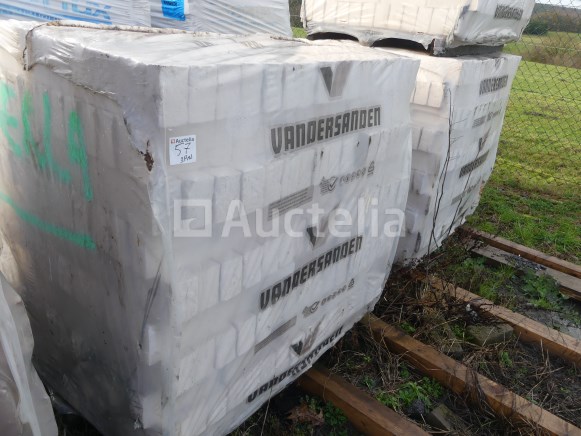 Baksteen Merk: Vandersanden Model: Perla Lengte: 21 cm Breedte: 9,5 cm Hoogte: 6 cm Aantal: 1800 Verspreid over 3 pallets Benaderende hoeveelheid Opmerkingen: Aanbevolen bezoek