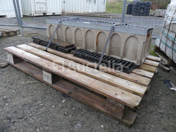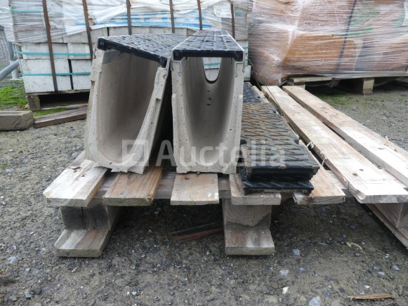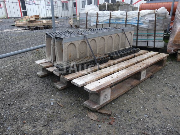 Dakgoten Merk: Ulma Lengte: 100 cm Breedte: 13,5 cm Hoogte: 25 cm Hoeveelheid: 2 Geleverd met gietijzeren roosters