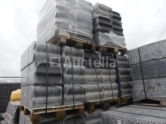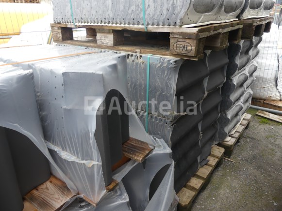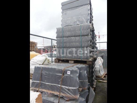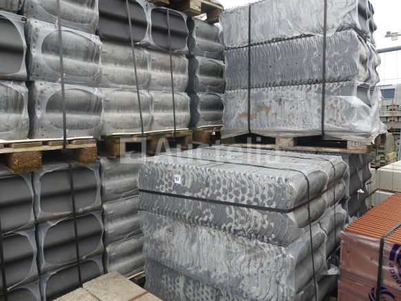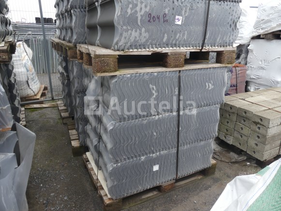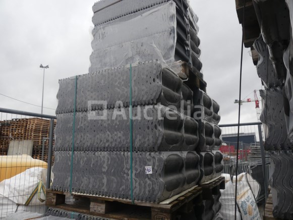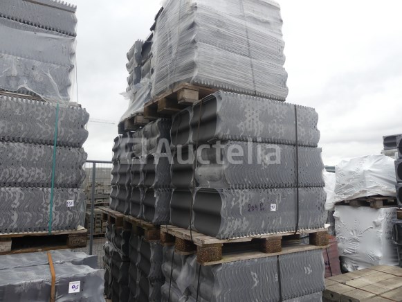 Zwarte Golvende Tegels Merk: Nelskamp Model: S-Pfanné Lengte: 42 cm Breedte: 33 cm Aantal: 3250 Bevat: 1 pallet met 26 tegels aan de linkeroever en 39 tegels aan de rechteroever Uitgespreid over 17 pallets Opmerkingen: bezoek aanbevolen