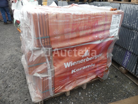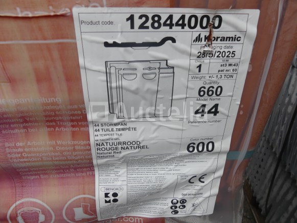 Tegels Merk: Wienerberger Model: 44 Natuurlijke Rode Stormtegel Lengte: 31 cm Breedte: 23 cm Aantal: 600 Verspreid over 1 pallet