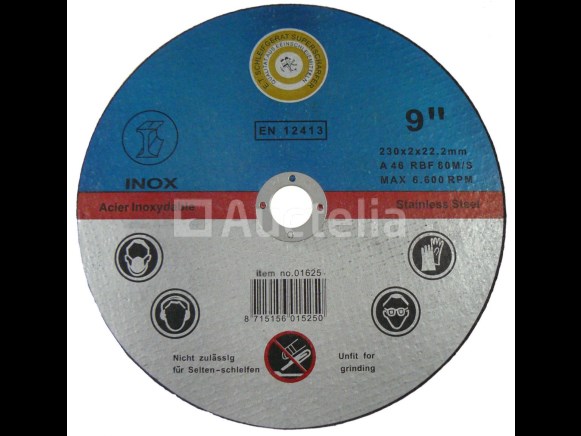 6 stuks Doorslijpschijf RVS 230MM, Inox slijpschijf voor staal, RVS, etc. Diameter schijf: 230 mm, Diameter asgat: 22,23 mm, Dikte schijf: 2 mm Staat: nieuw