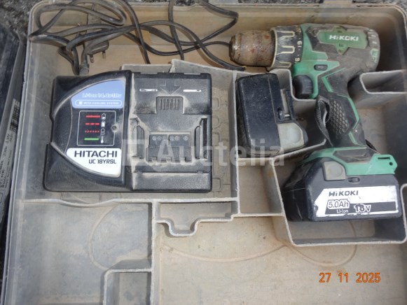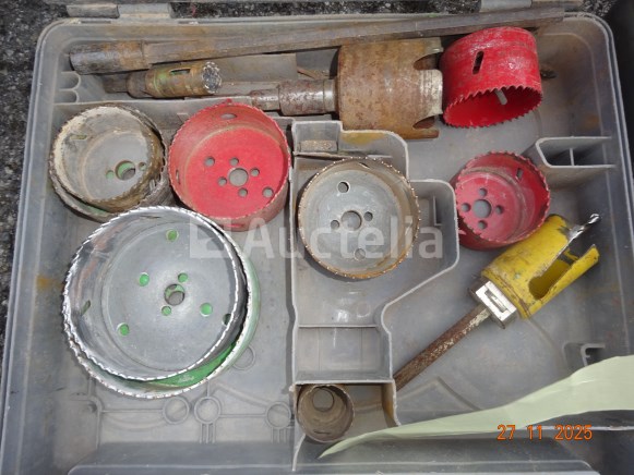 1 koffer met diverse gatzagen + 1 accuboormachine, verkocht met 2 batterijen en oplader van het merk HIKOKI
