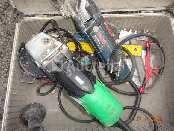 1 koffer inclusief 1 molen Merk: HITACHI Type G13SV3 1 multifunctionele machine Merk: BOSCH Type: GOP300FCE 1 koffer inclusief een Dymo-type RHIMOPRO 5000