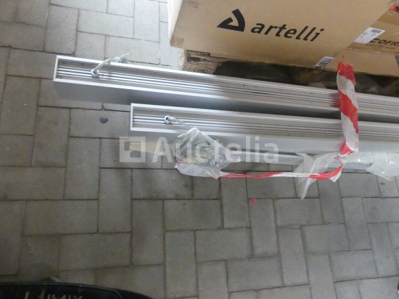 Conditie: Niet getest Aluminium pendrelende spoorlamp 4 x 400 cm 2 x 230 cm Opmerkingen: Aanbevolen bezoek