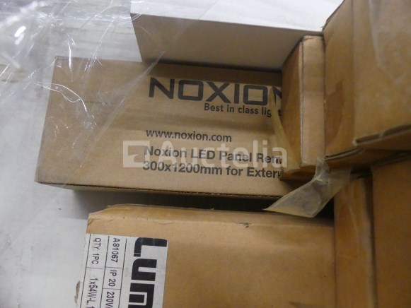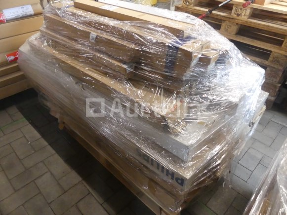 Staat: Nieuwe apparatuur Batch verspreid over een pallet In hun originele verpakking Nieuwe lampen en plafondlampen van verschillende modellen