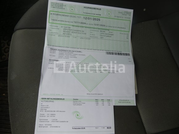 Bestelwagen Merk: Peugeot Model: Boxer multicab Jaar: 2015 Lengte: 600 cm Breedte: 205 cm Hoogte: 252 cm Vermogen: 96 kW Datum van eerste inschrijving: 22-12-15 Brandstof: Diesel Verplaatsing (cc): 2198 Versnellingsbak: Handgeschakeld MMA: 3500 kg Eigengewicht: 2155 kg Wielbasis: 403 cm Ophanging: Mechanisch Radio: Ja Achteruitrijdende radar: Ja Aantal toetsen: 1 Aantal zetels: 6 Certificaat van conformiteit: Ja Technisch keuringscertificaat: Ja Technisch inspectiecertificaat geldig tot: 12-01-25 Registratiecertificaat Deel 1: Ja Identificatierapport: Ja Voertuig nog in gebruik (kilometerstand verandert): Nee Chassisnummer: VF3YCTFC12A05979 Eurostandaard: 5b Conditie: Niet getest Notities: Aanbevolen bezoek Het voertuig is tijdens de inventarisatie niet grondig geïnspecteerd en kan niet-zichtbare defecten hebben. De koper zou het perceel vóór de aankoop hebben bezocht om eventuele afhandeling voor de incasso van zijn perceel te plannen