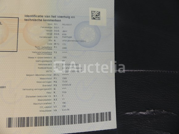 Auto Merk: Peugeot Model: Partner Jaar: 2016 Vermogen: 73 kW Datum van eerste inschrijving: 12-04-16 Brandstof: Diesel Verplaatsing (cm³): 1560 Versnellingsbak: Handgeschakeld Airconditioning: Handmatig Radio: Ja Aantal toetsen: 2 Aantal zetels: 5 Certificaat van conformiteit: Ja Technisch keuringscertificaat: Ja Technisch keuringscertificaat geldig tot: 12-04-25 Registratiecertificaat Deel 1: Ja Voertuig nog in gebruik (kilometerstand verandert): Nee Chassisnummer: VF37JBHY6FN541720 Eurostandaard: 6b Conditie: Niet getest Notities: Aanbevolen bezoek Het voertuig is tijdens de inventarisatie niet grondig geïnspecteerd en kan niet-zichtbare defecten hebben. De koper zou het perceel vóór de aankoop hebben bezocht om eventuele afhandeling voor de incasso van zijn perceel te plannen