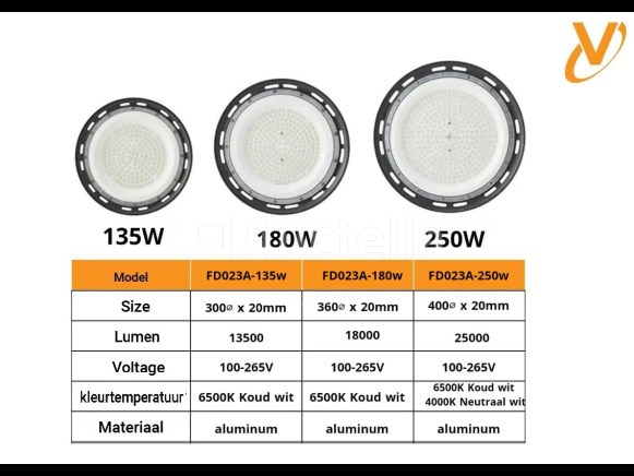 10 x Highbay UFO 250 Watt LED SLIM design biedt hoge efficiëntie met 25.000 lumen bij 100 lumen per watt - Koud wit licht bij 6500K voor heldere, scherpe verlichting - Waterdichte IP65-classificatie, ideaal voor zowel binnen- als buitengebruik - Slank, compact ontwerp (Ø 400 x 70mm) voor eenvoudige installatie - Duurzame constructie van aluminium en PC met een levensduur van 30.000 uur - 110° stralingshoek voor brede lichtdekking - Energiezuinig met een power factor 0,95 - Hoge CRI 80 voor nauwkeurige kleurweergave - Compatibel met 110-265V - Met 2 jaar garantie voor uw gemoedsrust - Geïntegreerde DOB IC-driver zorgt voor stabiele prestaties - Weinig onderhoud dankzij de lange levensduur - Efficiënte warmteafvoer voorkomt oververhitting - Milieuvriendelijk en kosteneffectief, verlaagt energiekosten - Biedt flikkervrije, stabiele verlichting.