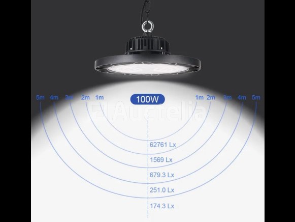40 x Highbay UFO 100 Watt LED in PRO-ontwerp biedt hoge efficiëntie met 12.000 lumen bij 100 lumen per watt - Uitgerust met Professioneel LED voor superieure helderheid en betrouwbaarheid - Dimbaar met een schakelaar die 3 verschillende standen biedt: 60%/80%/100% vermogen - Aangedreven door een hoogwaardige Lifud-driver, die stabiele prestaties garandeert - Koud wit licht bij 6500K voor heldere, duidelijke verlichting - Waterdicht met een IP65-classificatie, ideaal voor zowel binnen- als buitengebruik - Afmetingen: Ø 260mm x 102mm voor eenvoudige installatie - Duurzame constructie van gegoten aluminium met een PC-lens, met een levensduur van 30.000 uur - 90° stralingshoek voor brede lichtdekking - Energiezuinig met een power factor 0,95 - Hoge CRI 80 voor nauwkeurige kleurweergave - Compatibel met 110-265V - Geleverd met 5 jaar garantie voor gemoedsrust - Weinig onderhoud door de lange levensduur - Efficiënte warmteafvoer voorkomt oververhitting - Milieuvriendelijk en kosteneffectief, verlaagt de energierekening - Biedt flikkervrij, stabiel licht.