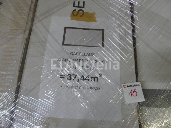 Compositie: +/-37,44 m² matte witte tegels van 30x60 cm (Wandelfliesen) +/-7 m² betegelde vloer 12X25 cm Aragon steengoed Verspreid over 1 pallet Opmerkingen: Ophalen op afspraak