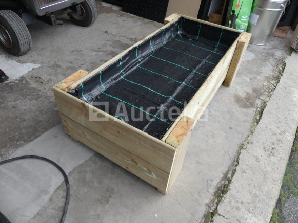 Lot waaronder: 1 x dakreinigingsbult 1 x 3 nieuwe graafmachines 2 x houten plantpotten 108 cm x 55 cm x 33 cm