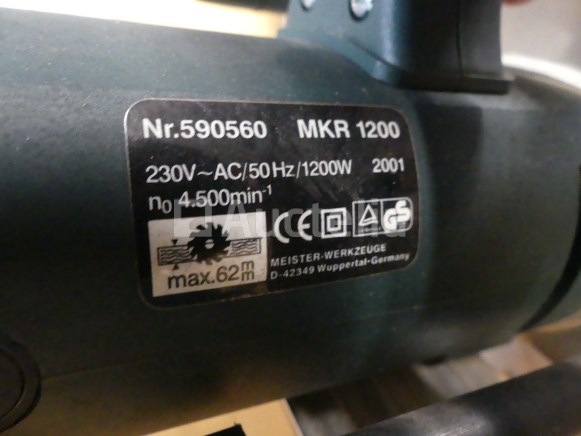 Draagbare cirkelzaag Merk: Meister Model: MKR 1200 Jaar: 2001 Conditie: Niet getest Spanning: 230 V enkelfasig