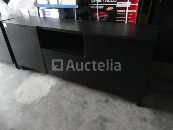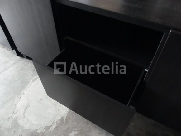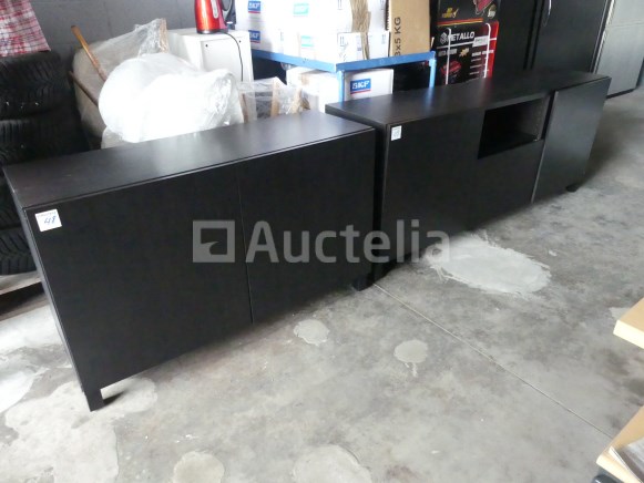 Zwarte melamine dressoirs Hoeveelheid: 2 Perceel waaronder: 1 x dressoir met 2 deuren en 1 lade van 180 cm x 42 cm x 74 cm 1 x 2-deurs dressoir van 120 cm x 42 cm x 74 cm