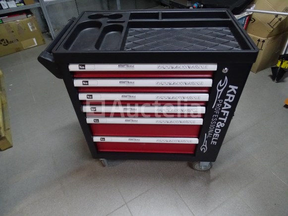 Lege gereedschapswagen met 6 lades en een zijzijkant voor opslag Merk: KRAFT&DELE Geleverd met 2 toetsen Met 2 wielen met rem en 2 wielen zonder rem Dimensie: . Totale breedte: 83 cm . Totale diepte: 46 cm . Totale hoogte met wielen: 88 cm Conditie: Nieuw Scheepvaart: Tarief D