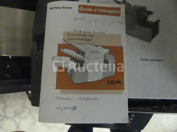 Sorteerder - vouwmachine Merk: Pitney Bowes Model: DI380 Lengte: 105 cm Breedte: 55 cm Hoogte: 65 cm Niet inbegrepen: Trolley