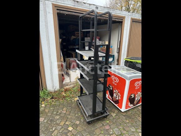 2 metalen displays op wielen van ongeveer 1,80 m hoog en 60 cm breed