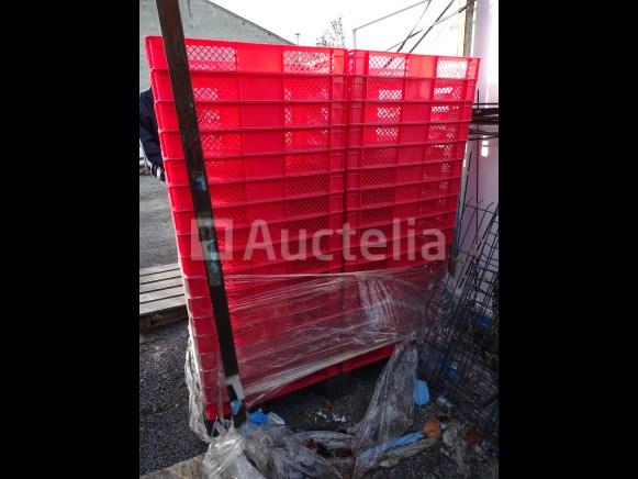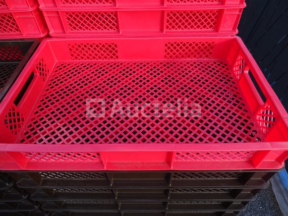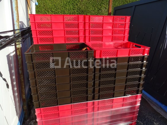 Voertray Optal: 60 stuks Details: . 48 rode bakken . 12 bruine bakken Dimensie van een bin: . Lengte: 60 cm . Breedte: 40 cm . Hoogte: 8 cm Conditie: Nieuw