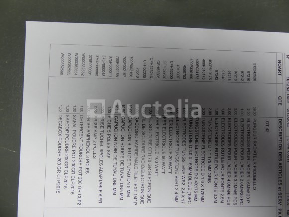 Niet inbegrepen: Plank + 2 fakkels (lot 41) Compositie: Klem, elektrodehouders, elektroden, elektrisch strijkijzer, producten, zaklamphouders, regelaars, enzovoort. Nooit gebruikt Opmerkingen: Aanbevolen bezoek