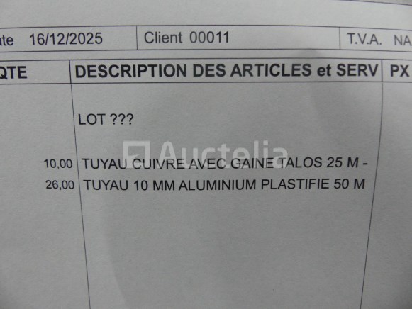 +- 10 m koperen leidingen met mantel +- 26 m aluminium buizen van 10 mm