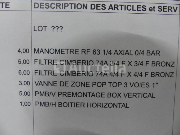 Drukmeter, cimberio-filters, kleppen, enzovoort.