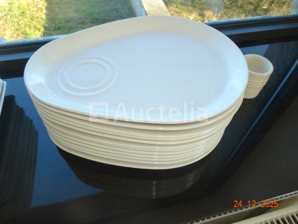 1 set wit servies van allerlei soorten Optal: +/- 100 stuks Let op: het hele ding staat op de twee vensterbanken in het restaurant