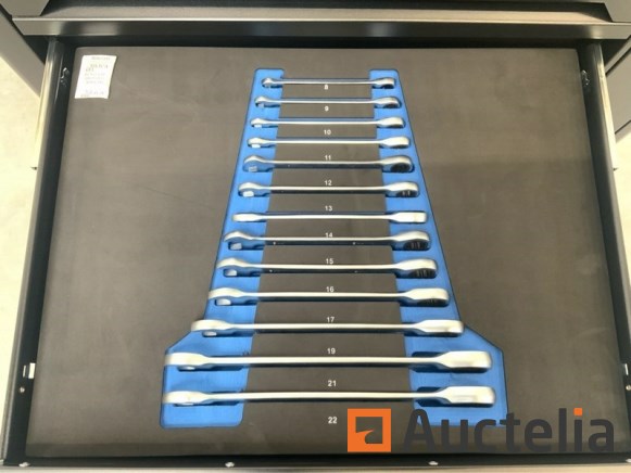 Aantal laden: 7 6 lades met inhoud 250-delig totale afmeting L: 845 mm; totale afmeting B: 460 mm; totale afmeting H: 975 mm; 2 zwenkwielen