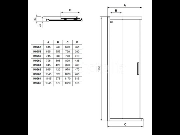 Productinformatie Schuifdouchedeur voor douchewandmontage Conditie: nieuw aantal 1 tweedelig reversibele ontwerp afmeting: 900 x 1950 mm instelling: 870 - 920 mm veiligheidsglas, dikte 6 mm vulling: helder glas geleverd met Ideal Clean glanzend zilveren profielen massief verchroomd handvat 225 mm horizontale afstelling: 25 mm per profiel syseem Click and Clean, soepel lopende wielen kan worden gecombineerd met douchebakken of rechtstreeks op tegels worden geïnstalleerd Om de douchewand te monteren is het nodig om 2 deuren te bestellen of te combineren met een massieve wand, maar alleen als derde zijde van de wand.