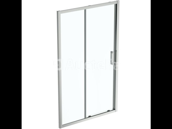 Schuifdeur voor nis of voor combinatie met vaste wand aantal : 1 stuks Conditie: nieuw Nieuwprijs 710 euro/ stuk tweedelig reversibele ontwerp afmeting: 1200 x 1950 mm instelling: 1170 - 1220 mm veiligheidsglas, dikte 6 mm vulling: helder glas geleverd met Ideal Clean glanzend zilveren profielen massief verchroomd handvat 225 mm horizontale afstelling: 25 mm per profiel syseem Click and Clean, soepel lopende wielen kan worden gecombineerd met douchebakken of rechtstreeks op tegels worden geïnstalleerd Kan afzonderlijk in een nis worden geïnstalleerd of in combinatie met een vaste zijwand.