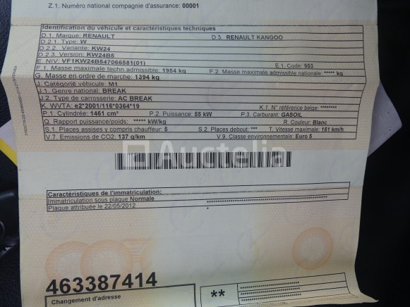 Nut Merk: Renault Model: Kangoo Jaar: 2012 Kilometerstand: 47883 Lengte: 421 cm Breedte: 183 cm Hoogte: 181 cm Vermogen: 55 kW Datum van eerste inschrijving: 22-05-12 Brandstof: Diesel Verplaatsing (cc³): 1461 Versnellingsbak: Handgeschakeld MMA: 3500 kg Eigengewicht: 2250 kg Wielbasis: 403 cm Ophanging: Mechanisch Airconditioning: Handmatig Radio: Ja Aantal toetsen: 1 Aantal zetels: 5 Certificaat van conformiteit: Ja Technisch keuringscertificaat: Ja Technisch keuringscertificaat geldig tot: 18-02-26 Registratiecertificaat Deel 1: Ja Vrachtwagengegevens: μ Identificatierapport: Ja Voertuig nog in gebruik (kilometerstand verandert): Nee Chassisnummer: VF1KW24B547066581 Eurostandaard: 5 Status: Op de dag van inventarisatie beginnen Notities: Aanbevolen bezoek Het voertuig is tijdens de inventarisatie niet grondig geïnspecteerd en kan niet-zichtbare defecten hebben. De koper zou het perceel vóór de aankoop hebben bezocht om eventuele afhandeling voor de incasso van zijn perceel te plannen