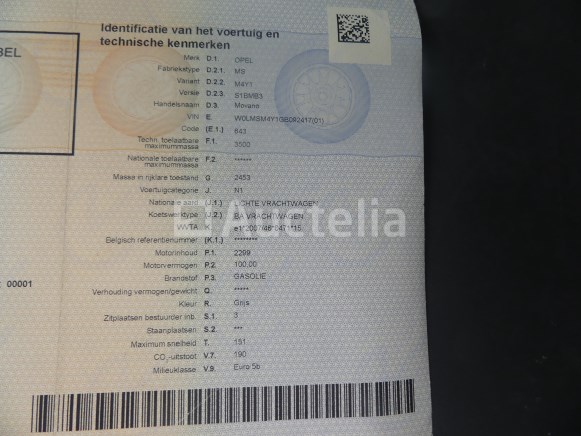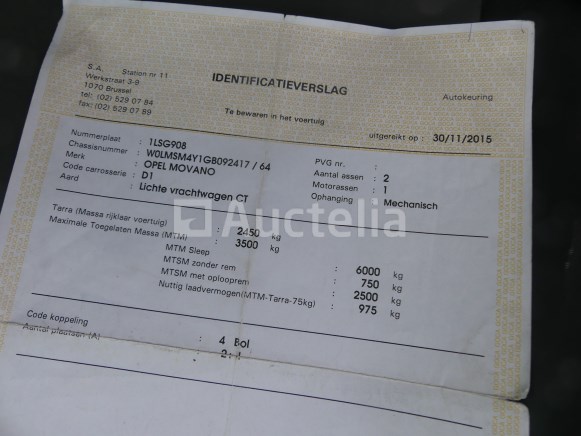 Pick-up truck met kiepwagen Merk: Opel Model: Movano Jaar: 2015 Kilometerstand: 31838 Lengte: 581 cm Breedte: 2100 cm Hoogte: 237 cm Vermogen: 100 kW Datum van eerste inschrijving: 23-11-15 Brandstof: Diesel Verplaatsing (cc): 2299 Versnellingsbak: Handgeschakeld MMA: 3500 kg Eigengewicht: 2450 kg Wielbasis: 368 cm Ophanging: Mechanisch Airconditioning: Handmatig Radio: Ja Achteruitrijdende radar: Ja Aantal toetsen: 1 Aantal zetels: 3 Certificaat van conformiteit: Ja Technisch keuringscertificaat: Ja Technisch inspectiecertificaat geldig tot: 30-11-26 Registratiecertificaat Deel 1: Ja Registratiecertificaat Deel 2: Te controleren Identificatierapport: Ja Voertuig nog in gebruik (kilometerstand verandert): Nee Chassisnummer: WOLMSM4Y1GB092417 Eurostandaard: 5b Status: Op de dag van inventarisatie beginnen Lichaamslengte: 328 cm Notities: Aanbevolen bezoek Het voertuig is tijdens de inventarisatie niet grondig geïnspecteerd en kan niet-zichtbare defecten hebben. De koper zou het perceel vóór de aankoop hebben bezocht om eventuele afhandeling voor de incasso van zijn perceel te plannen