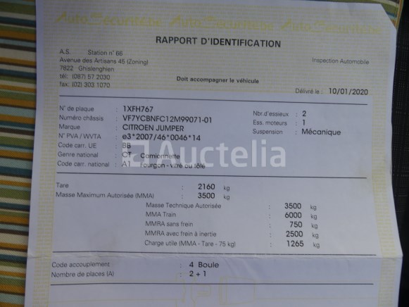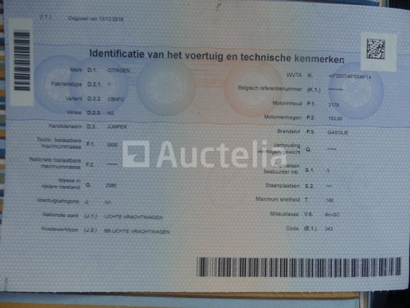 Pick-up truck Merk: Citroën Model: Jumper Jaar: 2019 Lengte: 600 cm Breedte: 205 cm Hoogte: 252 cm Vermogen: 103 kW Datum van eerste inschrijving: 13-12-19 Brandstof: Diesel Verplaatsing (cc): 2179 Versnellingsbak: Handgeschakeld MMA: 3500 kg Eigengewicht: 2160 kg Wielbasis: 403 cm Ophanging: Mechanisch Airconditioning: Handmatig Radio: Ja Achteruitrijdende radar: Ja Aantal toetsen: 1 Aantal zetels: 3 Certificaat van conformiteit: Ja Technisch keuringscertificaat: Ja Technisch keuringscertificaat geldig tot: 26-10-10 Registratiecertificaat Deel 1: Ja Registratiecertificaat Deel 2: Te controleren Identificatierapport: Ja Voertuig nog in gebruik (kilometerstand verandert): Nee Chassisnummer: VF7YCBNFC12M99071 Eurostandaard: 6d Conditie: Niet getest Inbegrepen: Inhoud Notities: Aanbevolen bezoek Het voertuig is tijdens de inventarisatie niet grondig geïnspecteerd en kan niet-zichtbare defecten hebben. De koper zou het perceel vóór de aankoop hebben bezocht om eventuele afhandeling voor de incasso van zijn perceel te plannen