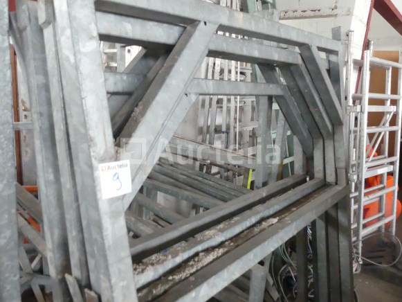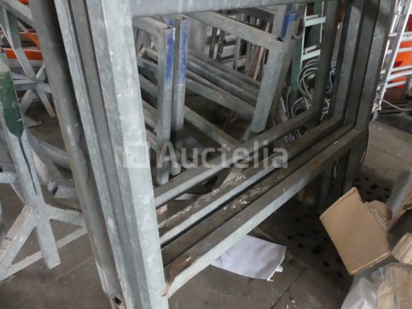 Modulaire steigers van het type steiger Compositie: 10 x 110 cm x 85 cm x 750 voet 7 x 110 cm x 50 cm verlengingen 10 x 110 cm x 85 cm verlengingen 18 x Relingrechtopstaande Staven Opslagrek Opmerkingen: Aanbevolen bezoek