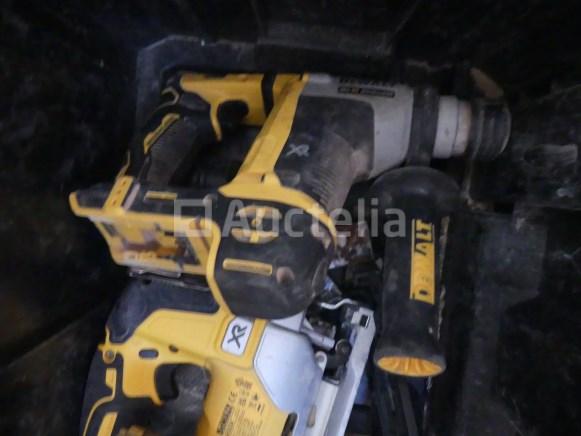 Batterij-aangedreven elektrisch gereedschap Naam: DeWalt Aantal: 5 Conditie: Niet getest Lot waaronder: 1 x DCD796 Schroevendraaier 1 x DCH172 Hamerboor 1 x DCS334 decoupuleer 1 x DCS565 cirkelzaag 1 x DCG405 Slijpmachine Geleverd zonder batterijen en oplader