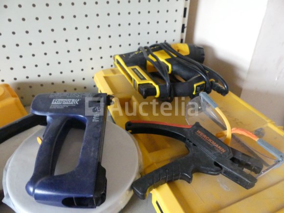 Lot waaronder: 7 lange SDS-bits 2 x Nietmachines Handzagen Troffels 2 x cirkelzaagbladen enzovoort.