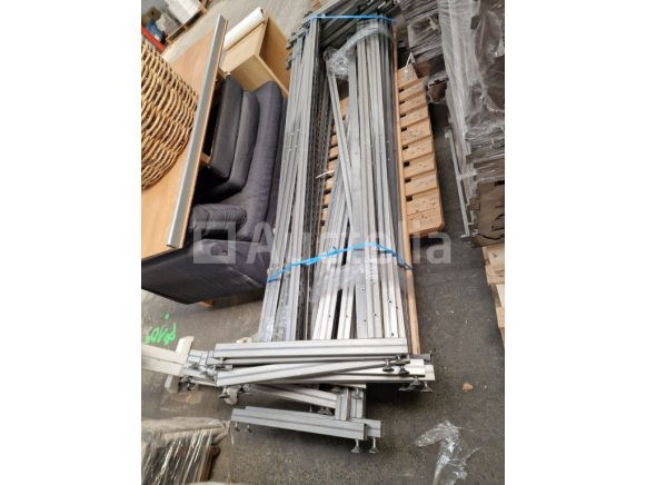 Een modulaire winkel- of magazijninrichting, merk ANIMAL = een ingenieus systeem dat men zelf kan opmaken en ontwerpen. De panelen kunnen naast elkaar geplaatst en gemonteerd worden. Deze inrichting is ongeveer 23 meter lang en 2,35 meter hoog. Een aantal foto's van de vroegere opstelling zijn bijgevoegd. Er zijn ook diverse armaturen en accessoires aanwezig.