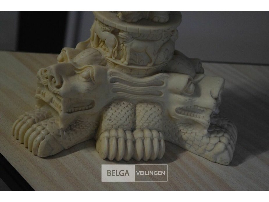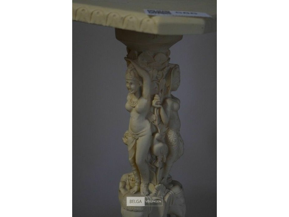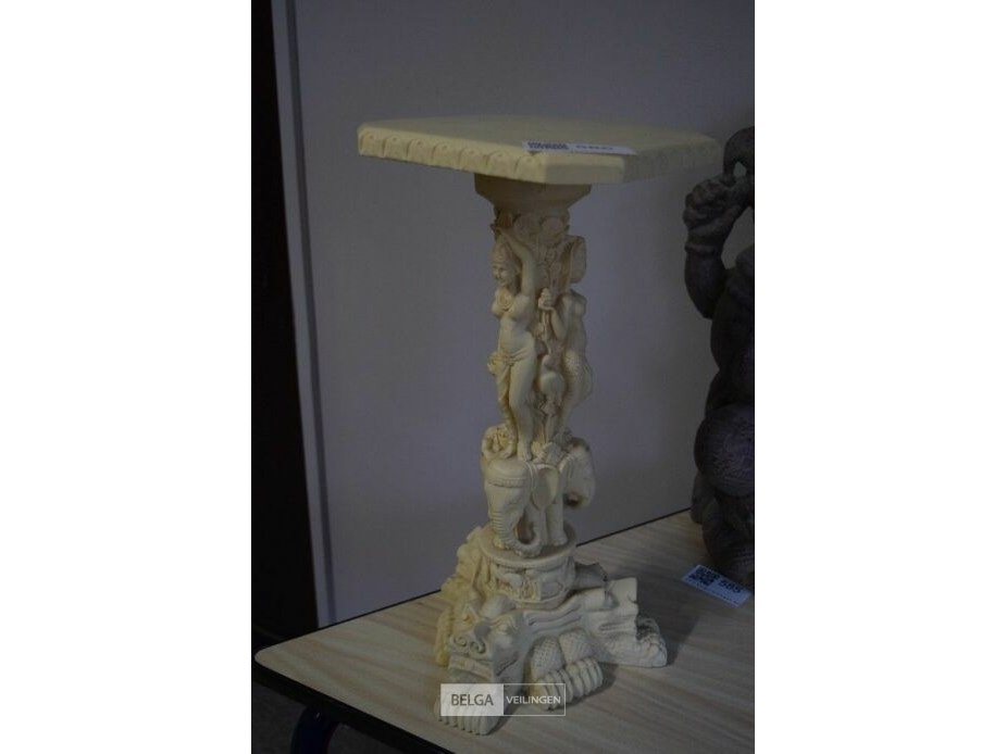 Albasten bijzettafel met gesneden aziatische motieven h=±47 cm