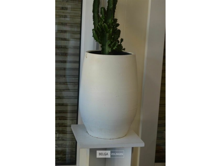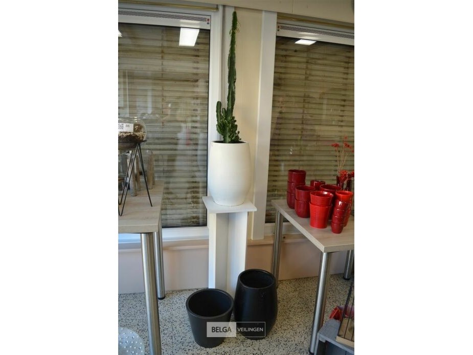 Plant met zuil en 2 ardewerk bloempotten