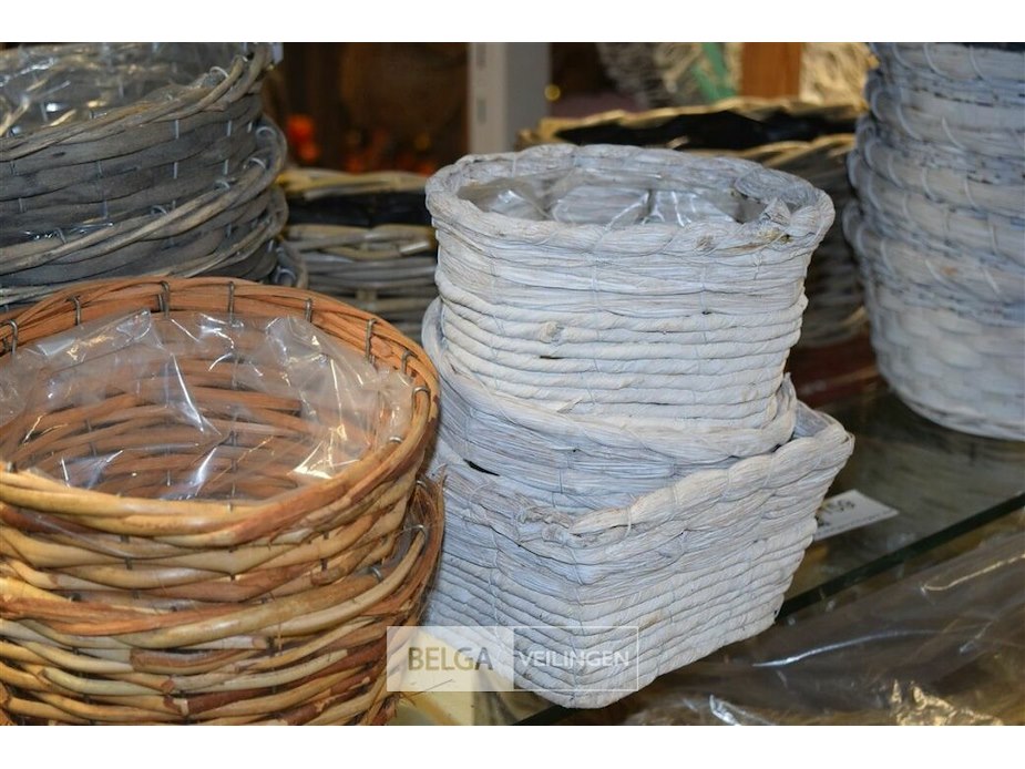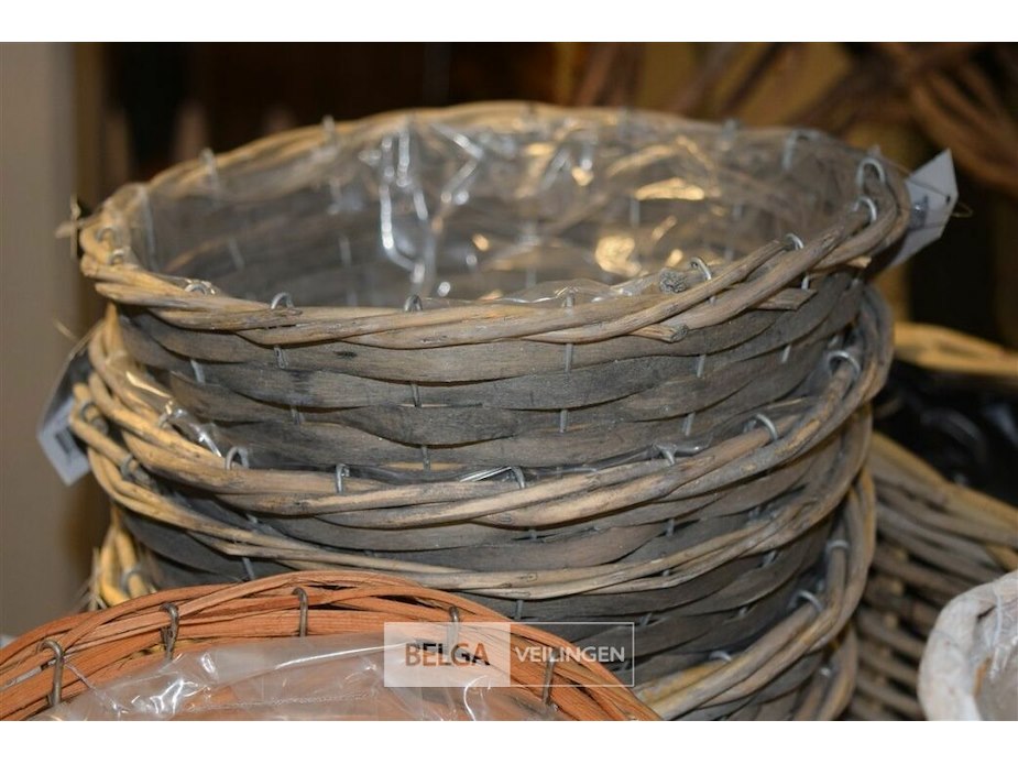 ±18 div maten rieten bloemmandjes