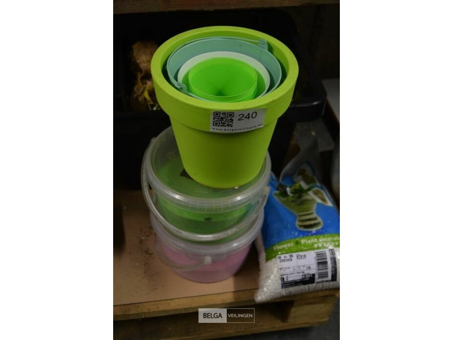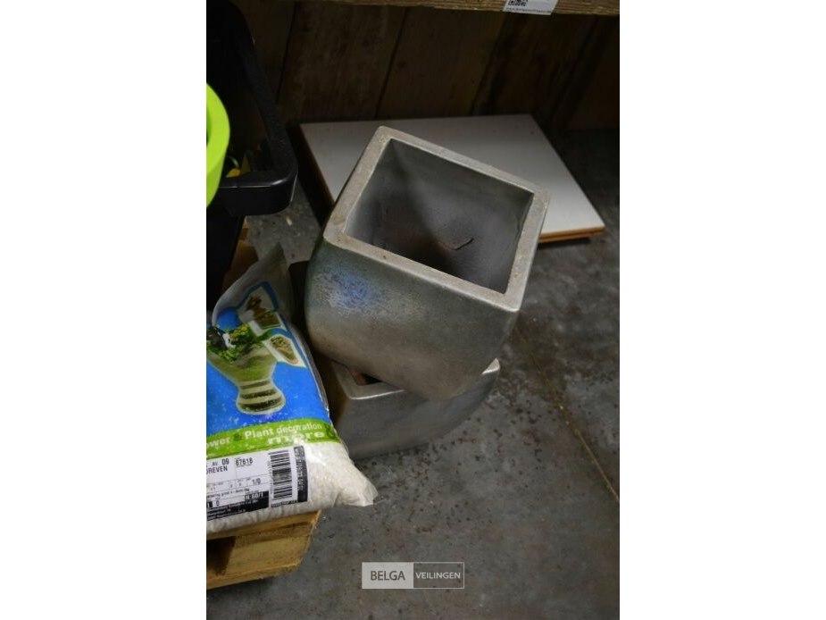 2 bloempotten met decoratiematerialen