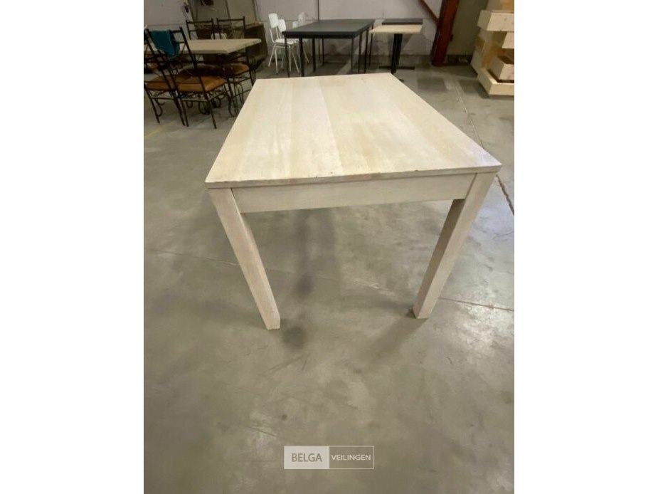Houten tafel met hout onderstel wit