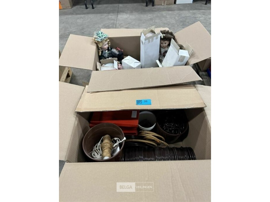 1 doos met speelgoed & 1 doos met poppen