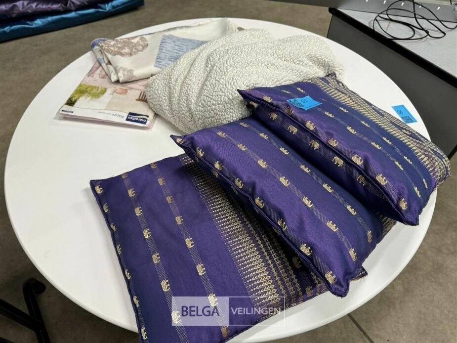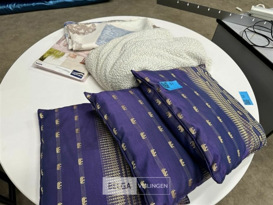 3 sierkussens + tafellakens + deken